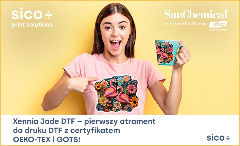 Atrament pigmentowy Xennia Jade DTF firmy SunChemical, dostępny w ofercie Sico, z dumą może pochwalić się certyfikatami OEKO-TEX® Standard 100 i Global Organic Textile Standard (GOTS). Te uznane na całym świecie certyfikaty potwierdzają bezpieczeństwo i zrównoważony charakter atramentu, czyniąc go idealnym wyborem dla producentów tekstyliów dbających o wysoką jakość i etyczną produkcję.