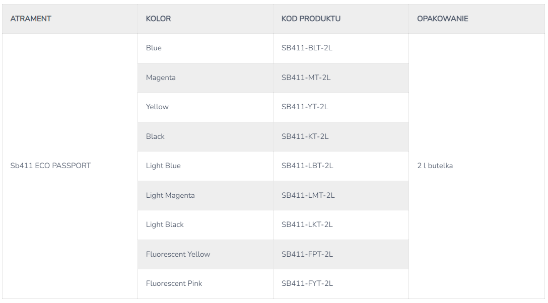 Atrament | SB411 (Bl, M, Y, K, Lbl, Lm, Lb, fluo Yellow i Pink) |